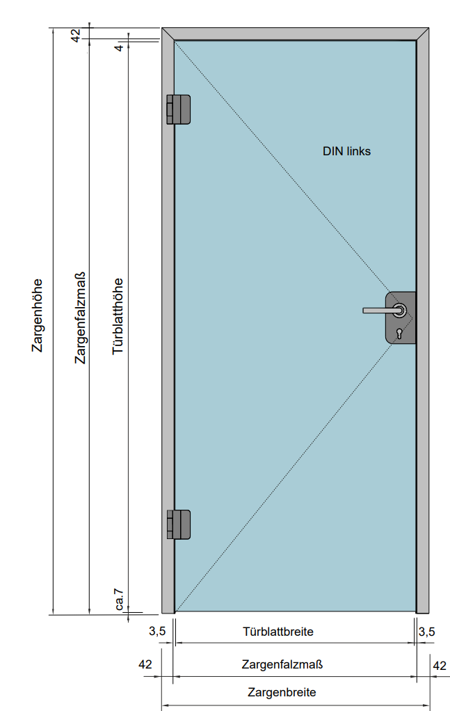 GTZ-60 Standardzargen für Glastürblatt 1-Flügel