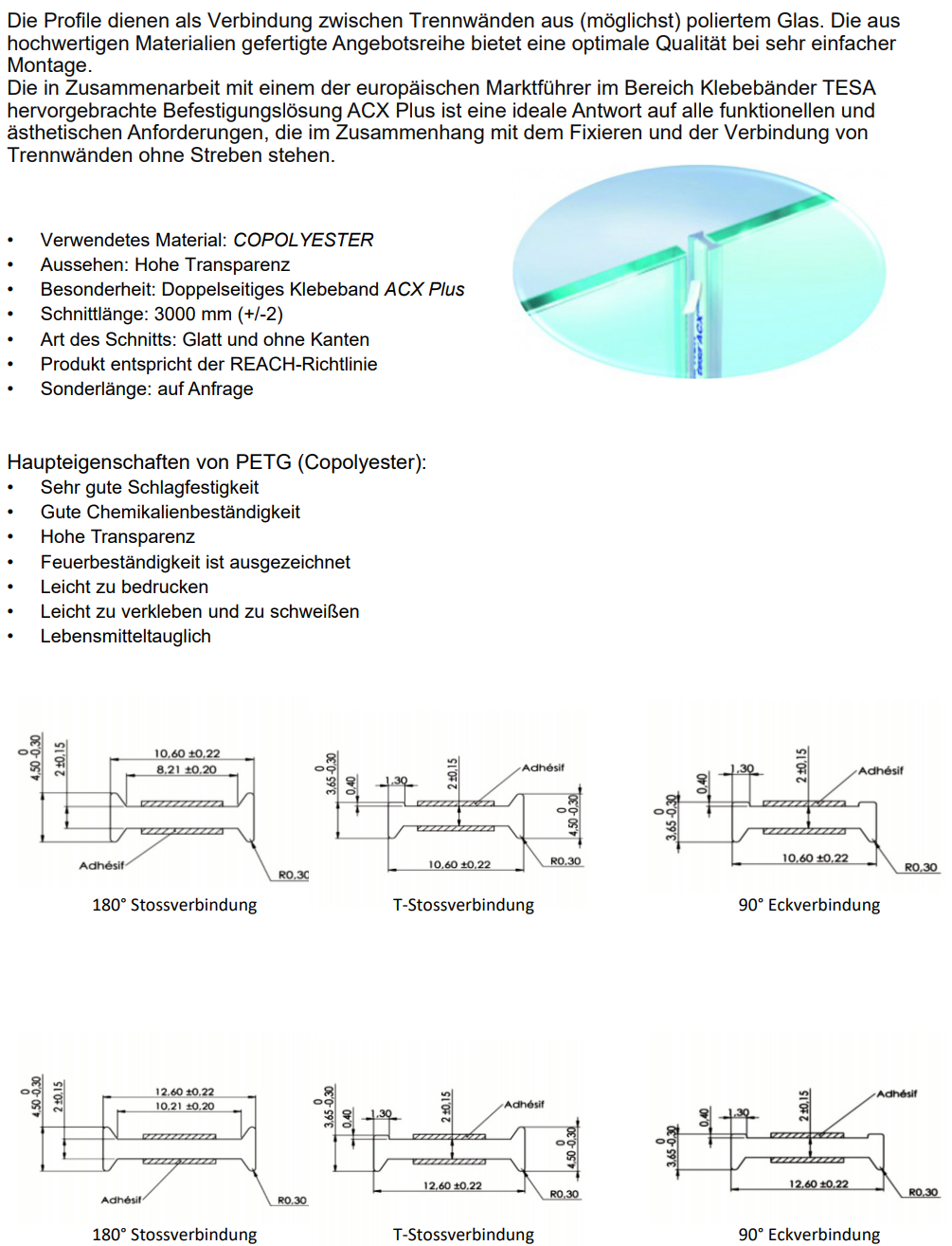 Transparente Glasverbindungsprofile